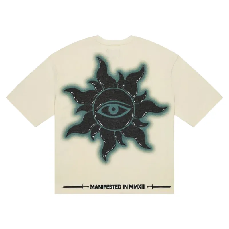 The back showcases a sunburst-style emblem with an all-seeing eye and “Manifested in MMXIII,” adding mystery and meaning. This piece fuses rebellion with artful design—built for those who move differently. Shop the Squadron Tee now at Future Rfrnce and elevate your streetwear lineup.
