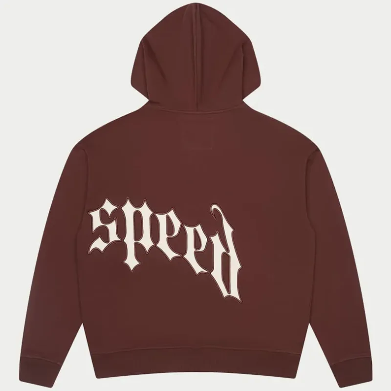 The Brown/White Godspeed OG Logo V2 Sweatsuit delivers a bold, clean look with a serious edge. This matching set includes a full-zip hoodie with a standout “God” graphic on the chest and relaxed-fit sweatpants featuring a large vertical logo down the left leg.
