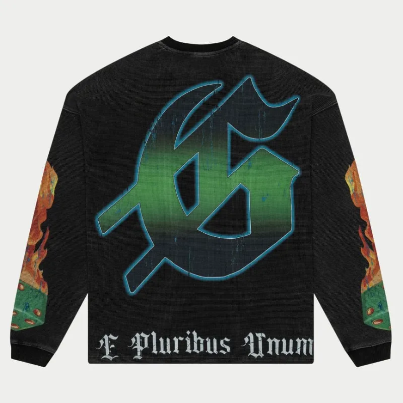 The Grey Wash L.A.G Thermal L/S brings the heat with vintage vibes and a bold attitude. Made from soft, waffle-knit thermal fabric, it’s built for comfort and edge. The oversized fit gives it a laid-back feel, while ribbed cuffs and crew neck keep the shape tight.