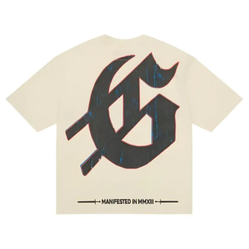 Experience fresh design with Our White Godspeed Smell The Roses T-Shirt. Featuring a sharp Liberty graphic on the front, this tee commands attention. The back showcases bold GS lettering, paired with subtle text near the lower hem for added detail.